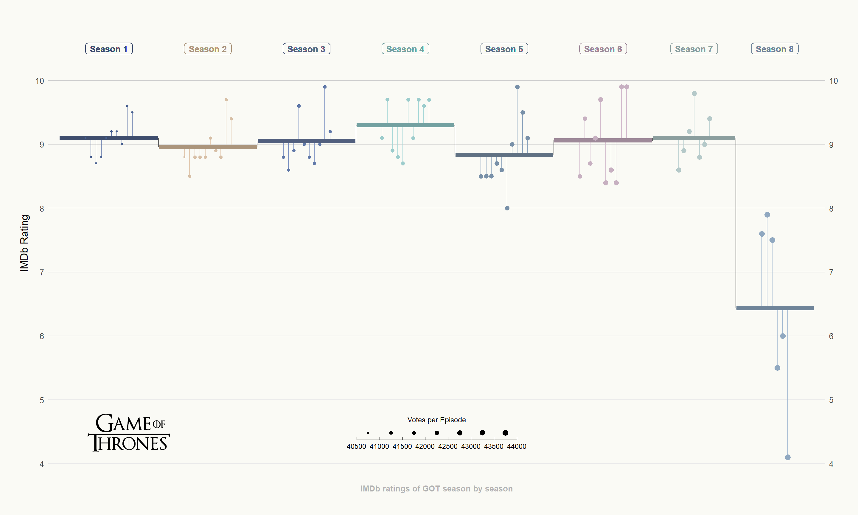 A simple visualization of how GOT failed in the much anticipated season finale and did a terrible job of letting it’s fans down worldwide.